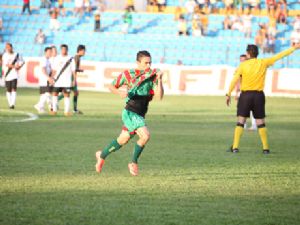 Após dez minutos iniciais movimentados, o jogo continuou equilibrado e sem grandes chances até os 27 minutos. E aí brilhou a estrela de Anderson Pimenta, o Pimentinha. Com a chance de iniciar jogando pela primeira vez nesta Série D, o meia-atacante aproveitou a oportunidade e marcou um belo gol para o Tricolor, chutando de fora da área no ângulo direito de Perereca.