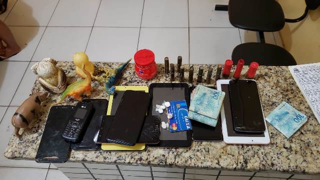 Na residência de Francisco Viana “neném cigano”, foi encontrado drogas, materiais para embalagens dos, caderno de anotações de venda, uma quantidade significativa de substâncias semelhante a cocaína e munições.